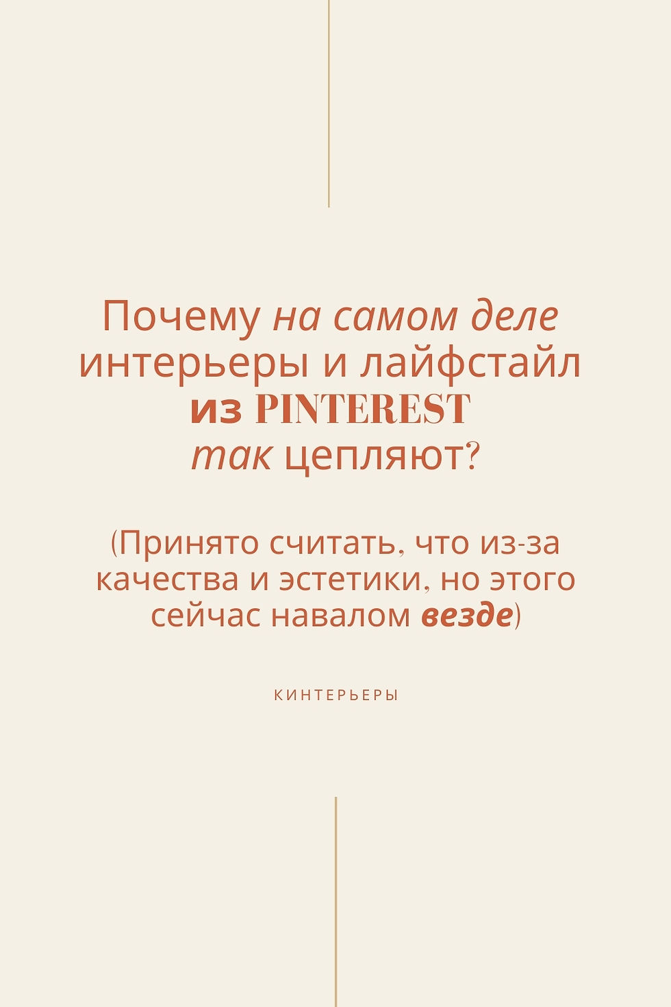 Я вижу много комментов в соцсетях, где люди раздражаются от самого выражения «как из Пинтерест» и «пинтерестный». Но почему такие выражения вообще прижились? Дело в том, что когда говорят «как в Pinterest», большинство людей отлично понимают, о чём речь, даже если не могут это сформулировать. Сформулирую сейчас сама.